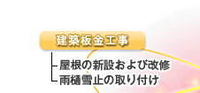 建物の金属に関するお悩みはテラバンの板金工事にお任せ下さい。建物の金属部分は主に屋根に使用されていますが、屋根は建物の中で最も風化を受けやすい存在です。雨に当たり、雪が積もる上に、夏の暑い日差しを浴びるとどんなにたくましい金属でも、早さは異なれど風化してしまいます。普段私達の生活で目に入る機会が少ない箇所ですが、一家の財産を守る大変重要な役割を果たしております。